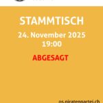 der November-Stammtisch (24.11.2025) der Piratenpartei Ostschweiz fällt leider aus beruflichen Gründen aus.